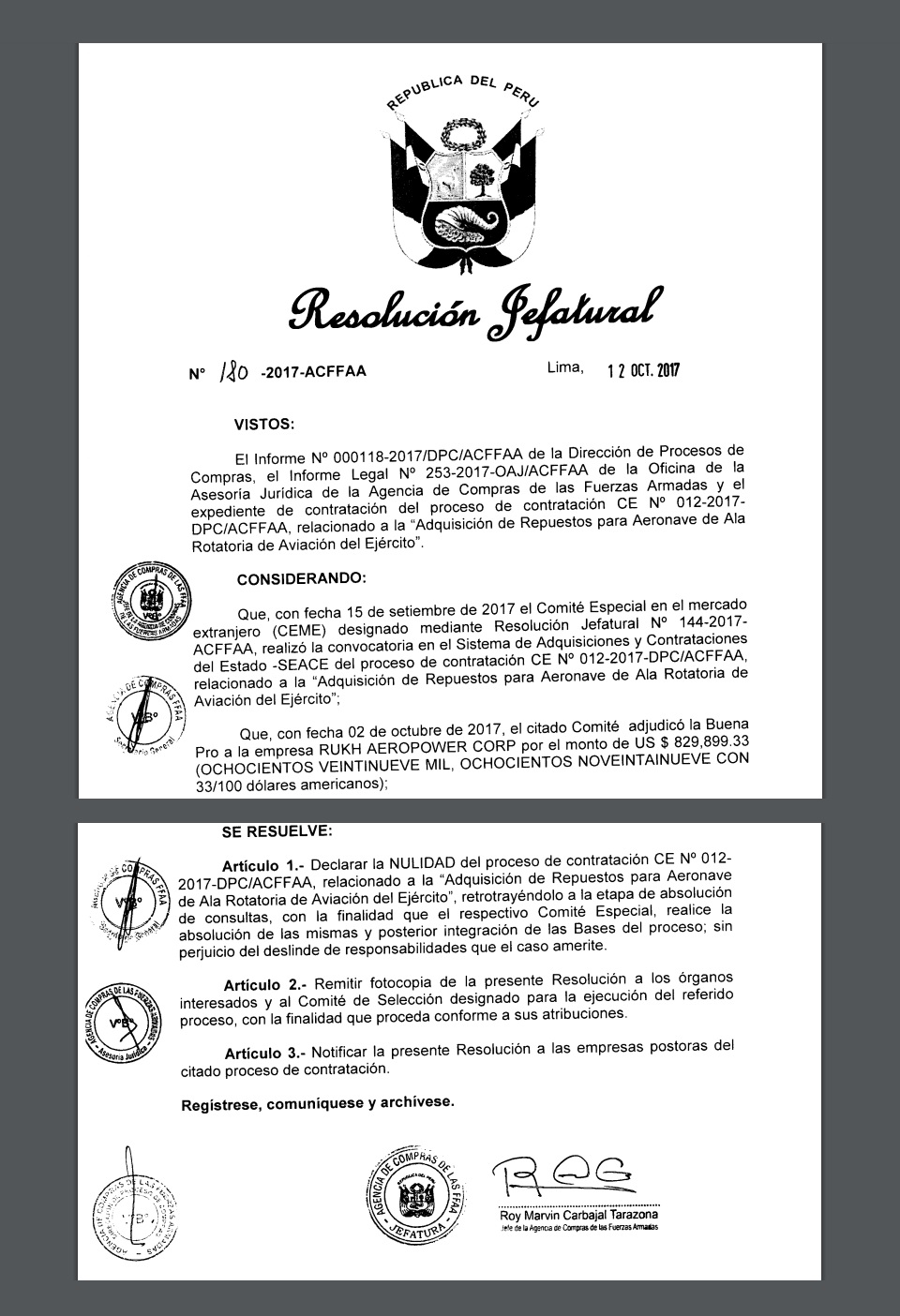 Gobierno anuló compra de repuestos para helicópteros que ganó empresa de Miami