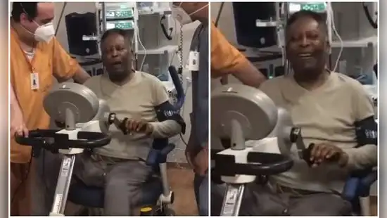 ‘O Rei’, de 80 años, acompañó la publicación con un video en el que aparece pedaleando y moviendo los brazos mientras dos profesionales de salud del hospital Albert Einstein lo alientan.