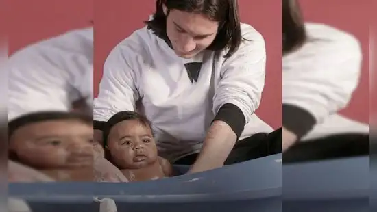 Cuando llegó el momento de la foto, Joan llenó la tina y entró Messi, quien era muy tímido y nunca antes había tenido a un bebé en brazos. Con mucho cuidado, lo colocaron en el agua, siempre con la madre vigilante. Al principio no fue fácil hasta que apareció el patito de Jana. Desde entonces, la atmósfera se relajó y Monfort capturó la imagen.