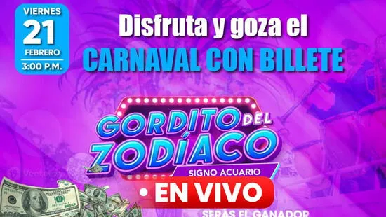 No te lo pierdas, en cuestión de minutos iniciará el emocionante sorteo del Gordito del Zodiaco este viernes 21 de febrero.