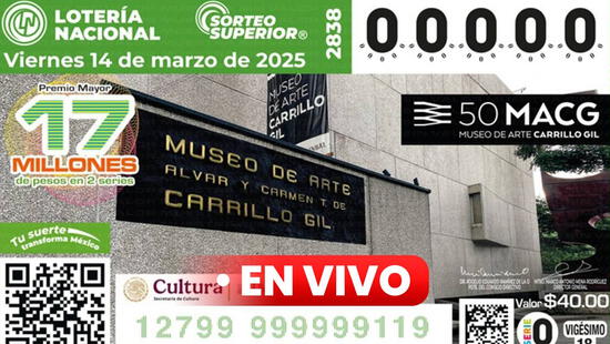 Mira los resultados del Sorteo Superior 2838 de la Lotería Nacional de México EN VIVO HOY, viernes 14 de marzo de 2025. Uno de los sorteos más esperados por los apostadores en todo el país ya nos entregó todos sus números ganadores, entre ellos el del premio mayor de 17 millones de pesos en 2 emisiones. ¿Listo para conocer si la fortuna te sonrió en esta ocasión?