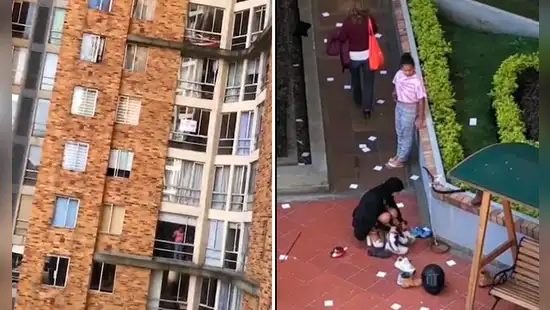 En un condominio de Bogotá, Colombia, una mujer fue grabada por sus vecinos cuando lanzaba por la ventana de su departamento todas las pertenencias de su esposo, mientras ambos mantenían una fuerte discusión por una presunta infidelidad. El hijo adolescente de la pareja también se encontraba en la escena.
