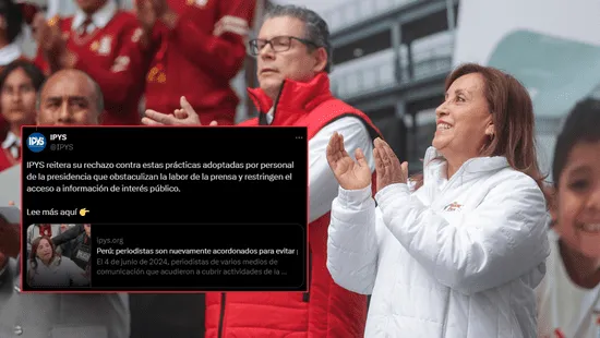 " La Asociación Nacional de Periodistas obtuvo información que señala que como parte de protocolo de seguridad de las últimas actividades presidenciales, la prensa está impedida de salir del estrado desde que llega Dina Boluarte hasta que se retira. En esta oportunidad, hubo incluso francotiradores custodiando las actividades de la presidenta (...) IPYS reitera su rechazo contra estas prácticas adoptadas por personal de la presidencia que obstaculizan la labor de la prensa y restringen el acceso a información de interés público", enfatizó la mencionada institución en las redes sociales.