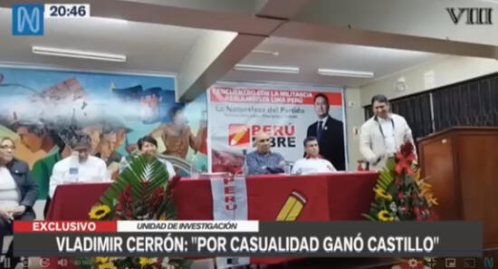 El secretario general de Perú Libre, Vladimir Cerrón, dio un discurso, en presencia de personas allegadas a su partido político, en el que afirmó que la victoria de Pedro Castillo en las elecciones generales de 2021 para la presidencia de la República fue producto de una casualidad. El hermano de Waldemar Cerrón participó en este evento desarrollado el último 1 de julio en un local del Cercado de Lima, en el que se presentó el Comité Ejecutivo Nacional de Perú Libre.