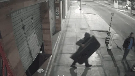 Tras ello, no volvieron a dar señales de vida una hora después, cuando un automóvil negro se estacionó frente al local. De inmediato, tres de los delincuentes que estaban adentro levantaron la puerta y comenzaron a sacar uno a uno los ocho televisores.