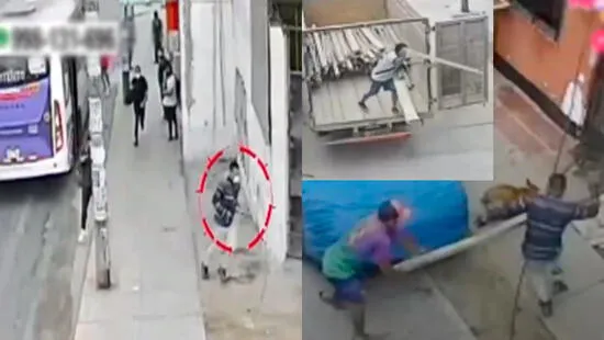 En un momento llegaron a una calle estrecha, donde obreros de construcción civil descargaban maderas de un camión. Ellos, al ver la situación, intentaron detener al malhechor y no se les ocurrió mejor manera que tirarle la madera que tenían en sus manos. Uno de los albañiles incluso, al ver que falló en obstruirle el paso, corre detrás de él para ver si lo alcanza.