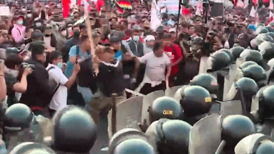 Se registraron enfrentamientos entre manifestantes y efectivos de la Policía Nacional del Perú durante la denominada “La toma de Lima”, marcha a favor del presidente Pedro Castillo.