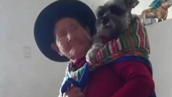 La mujer cuenta en su idioma que acogió a Raylu desde que era un cachorrito y nunca se ha separado de él, incluso lo andaba cargando en su espalda con una manta.