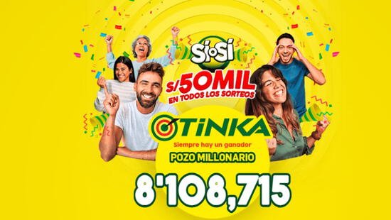 El premio de La Tinka aumentó a 8 005 348 soles para el próximo sorteo que se realizará el miércoles 16 de agosto de 2024.