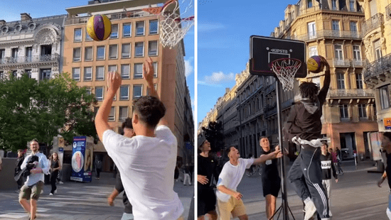 El video viral sobresale por la singular forma en la que unos jóvenes van lanzando el balón de básquet hacia desconocidos que se cruzan por las calles. El usuario @tuvok12 es un francés que motivó a sus amigos para animar a la gente de su ciudad a jugar de manera espontánea, hasta conseguir a alguien que logre encestar. Vale rescatar que cada sujeto que decide participar se le va calificando en un rango del 1 al 10, por la forma en que anota una canasta.
