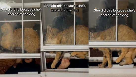 Las imágenes compartidas por la usuaria @airwreckaura mostraron los momentos de tensión que vivió la familia cuando su gata no podía salir de una ventana. La felina había llegado hasta aquella parte de la casa en su afán de alejarse del perro que había traído su dueña a su hogar.
