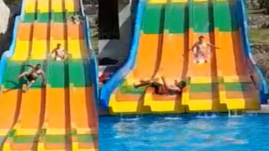Los toboganes de agua son un medio de entretenimiento y actividad al aire libre en la mayoría de los parques acuáticos, pero estos también pueden ser peligrosos cuando factores como la altura y la velocidad se toman con medidas extremas. Así lo demuestra el clip publicado por la cuenta @luiscu, en donde se ve a un grupo de personas disfrutando de un día de piscina.