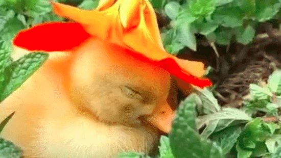 En el clip, compartido por la cuenta Mother the Mountain Farm, se puede ver al ave sentada en medio de un jardín de menta, luego una mano aparece en escena y coloca una flor naranja sobre su cabeza. El animalito se duerme profundamente y su sombrero de flores cae al suelo.