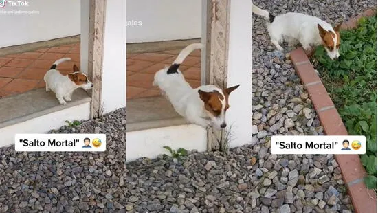 El clip que fue compartido por @laranitadenogales mostró a un perrito que era motivado por su dueño a realizar un ‘salto mortal’. La pequeña mascota llamada Patachin se encontraba moviendo la cola en la grada de la puerta de su casa. Cuando su dueño captó su atención, le indicó que tenía que saltar.
