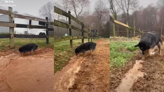 De a pocos el canal fue tomando forma gracias al perro que rascaba la tierra y se manchaba las patas con el lodo que se formaba a centímetros de él. No es la primera vez que la usuaria muestra a través de su cuenta la habilidad que tiene el can, ya que anteriormente se han publicado videos donde el animal muestra su destreza.