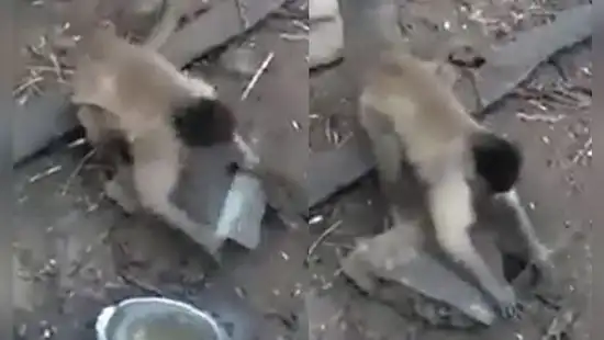 A menudo, los monos suelen imitar algunos hábitos que tienen los humanos, y así lo confirma un video viral, que ha sumado más de 3.500 reproducciones, en donde se ve a un mono levantando un cuchillo grande con su mano, luego, lo moja con agua en la olla y lo frota contra una roca para sacarle filo. Esta acción la repite en más de una oportunidad.