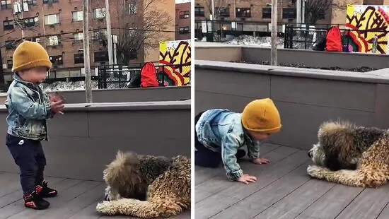 El video publicado por el usuario de Twitter @Thund3rB0lt ha conseguido hacerse viral. La escena muestra no solo la tierna reacción del niño al animal, sino también la interacción del perro con él. En las imágenes se nota la emoción del pequeño al quedarse boquiabierto e inmediatamente comenzar a aplaudir mientras el can se acerca lentamente a él.