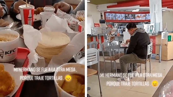 Según la publicación realizada por el usuario Tanny Sandoval, los cinco miembros del grupo ingresaron al local de Kentucky Fried Chicken. Tras hacer su pedido, decidieron sacar unas tortillas para acompañar el menú.