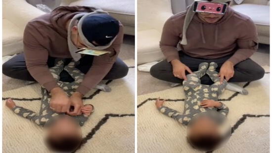 En el clip viral se puede ver al hombre cambiando el pañal de su recién nacido mientras mantenía su celular pegado en su frente, gracias a un cinturón que ató alrededor de su cabeza. Todo esto mientras sonaban las canciones infantiles de Cocomelon.