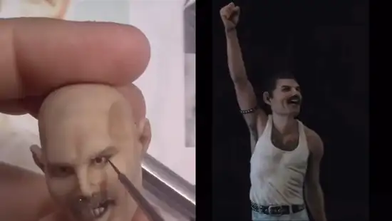 En este contenido multimedia, compartido por el usuario de TikTok @freddie_queen84, se puede ver cómo el artista tomó un molde que sería utilizado como el cráneo de Freddie Mercury. En seguida, prosiguió con la colocación de los ojos y su boca. Luego creó el cuerpo del cantante junto con toda su ropa y sus colores. Lo más llamativo del clip es que el hombre se preocupó por marcar cada uno de los detalles del exmiembro de la banda Queen.