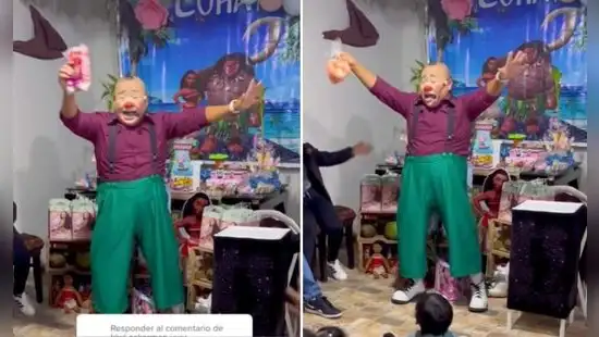 Para finalizar con la dinámica, el animador terminó sacando un supuesto kilo de pollo, que alborotó a los padres y niños. La viral escena, que fue compartida en diferentes plataformas, generó diversas reacciones y comentarios de elogio al payaso.