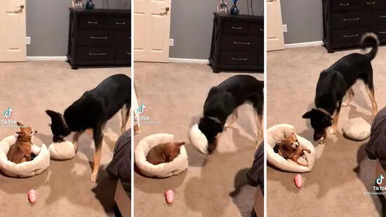 Un pequeño incidente. No cabe duda que los animales se han convertido en los ‘reyes’ de los videos virales, los cuales se publican a diario en TikTok y otras redes sociales. En esta ocasión, un perro no midió su fuerza y golpeó de casualidad a su ‘hermano menor’ que tomaba un descanso en su cama.