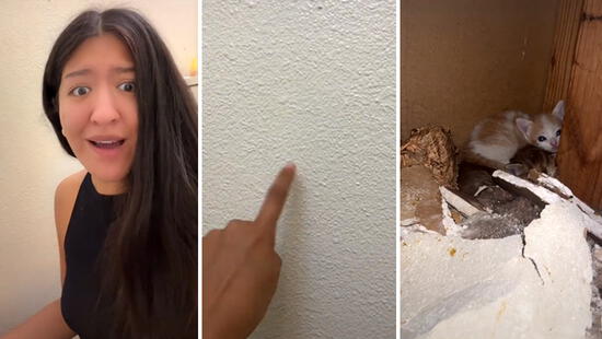 Las imágenes mostraron parte de la pared destruida y un pequeño espacio donde estaban tres adorables felinos. “Había gatos en mi pared. Son apartamentos medio viejos, así que supongo que se cayeron del techo”, expresó la joven, identificada en TikTok como @rialapapa.