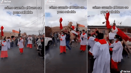 “El caballo reaccionó así con el sonido de los cohetes”, “El ‘burro’: agárrese señor que ya vienen los soldados”, “Es que caminan muy lento y el caballo tiene prisa”, “El monaguillo: pero cual fue el mal que yo hice”, fueron algunas reacciones a la publicación de TikTok.