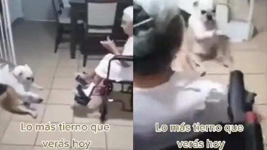 El animal se colocó en una posición bastante particular al frente de su dueña. Inmediatamente, el can comenzó a bailar cuando la mujer mayor de edad cantaba y aplaudía. Lo más llamativo de este clip fue que el perrito se tomó un momento para descansar y luego volvió a danzar al ritmo de los cantos de la abuela.