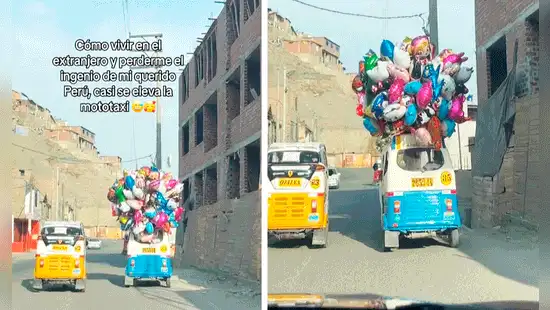 El video titulado 'Como vivir en el extranjero y perderme el ingenio de mi querido Perú. Casi se eleva el mototaxi' capturó no solo el colorido despliegue de globos, sino también las reacciones de sorpresa y deleite de quienes presenciaron el paso del mototaxi. Este pequeño viaje se transformó en un evento que rompió la rutina diaria y añadió un toque de magia y fantasía a la jornada laboral de muchos.