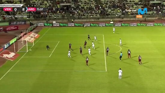 Golazo argentino. Argentina domina en tierras venezolanas y ya lo llevó al marcador. Joaquín Correa culminó una excelente triangulación con Lionel Messi y Lautaro Martínez y puso el segundo para su selección. El actual atacante del Inter de Milán definió con un derechazo raso que venció a un Faríñez, que pese a la estirada, no pudo evitar la caída de su arco. VIDEO: Movistar Play.