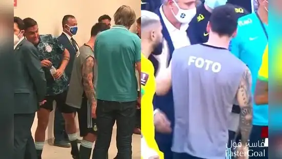 Lionel Messi llegó a Brasil para ganar los tres puntos, pero solo jugaron cinco minutos y el encuentro se suspendió. Luego del hecho, el argentino se quitó la camiseta albiceleste y se puso el chaleco que llevan los fotógrafos. Anduvo paseando y conversando con los demás futbolistas, pero Paulo Dybala se dio cuenta después y se ‘mató' de risa. VIDEO: TyC Sports