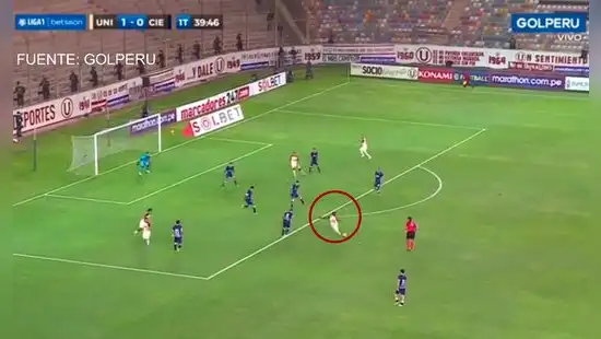 Universitario derrota a Cienciano por la mínima diferencia al término del primer tiempo. El cuadro crema gana un encuentro en el que ha tenido pocas chances claras. Una de ellas llegó a los 40′ a través de Alberto Quintero. Tras una buena combinación con Gerson Barreto y Piero Quispe, el panameño -con una gran maniobra personal- se sacó a un defensa rival y buscó el arco imperial. Sin embargo, su remate fue débil y desviado, perdiendo una buena oportunidad de aumentar el marcador. VIDEO: GOLPERÚ