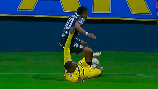 En el duelo contra Independiente del Valle por la Sudamericana, el lateral derecho cometió una dura infracción y le sacaron tarjeta amarilla.