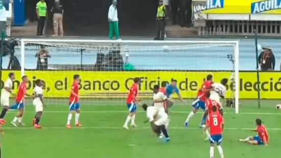 El central colombiano Davinson Sánchez marcó de cabeza dentro del área tras un rebote y puso el primero ante Chile por la décima fecha de las Eliminatorias 2026.