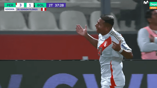 Edison Flores tomó el rebote de Viscarra y anotó el 3-1 de Perú. Foto: Movistar Deportes