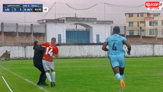 ¡Insólito! Jugador del fútbol ecuatoriano mete un codazo en la cara al entrenador rival y fue expulsado