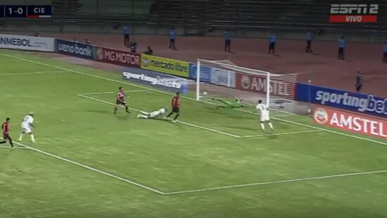 Antes de finalizar el primer tiempo, el jugador ecuatoriano apareció para anotar un extraño gol de cabeza y darle el 1-1 a Cienciano contra Caracas.