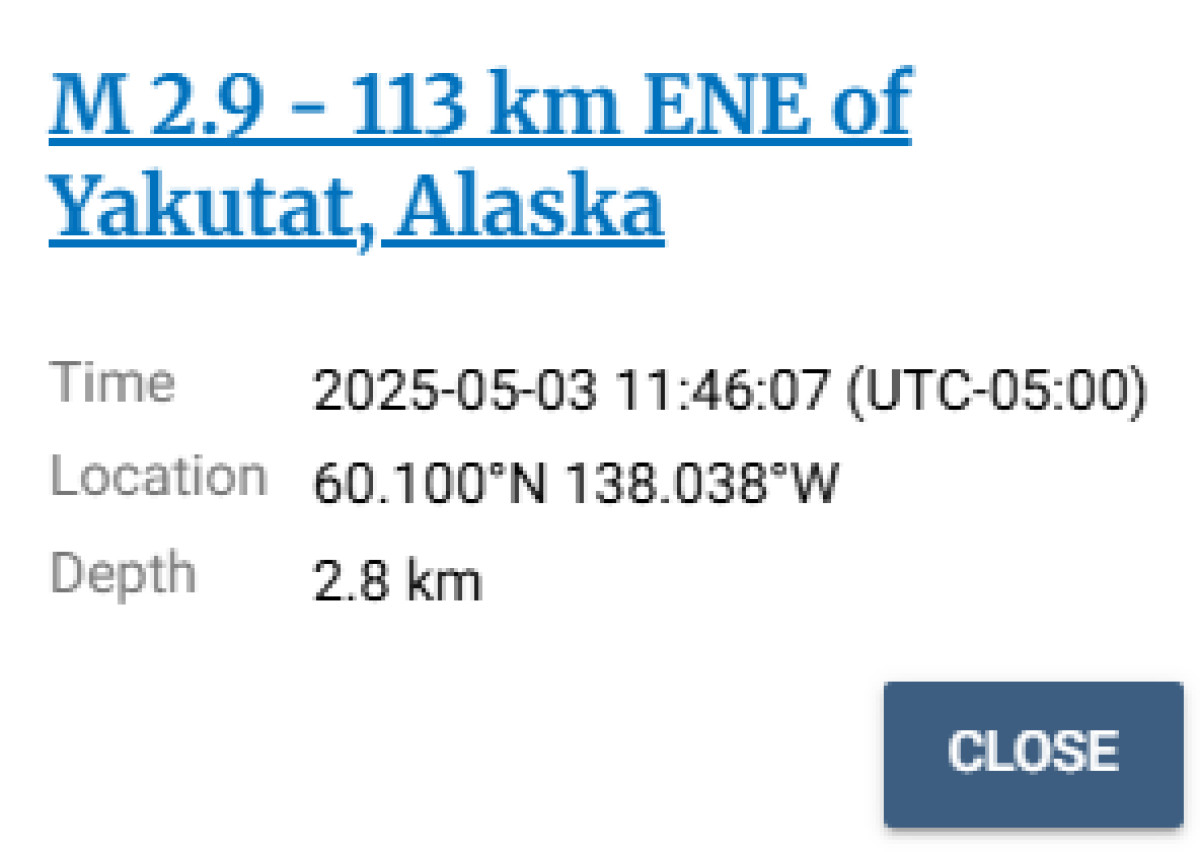 Último sismo reportado en Yakutat, Alaska, por el USGS.