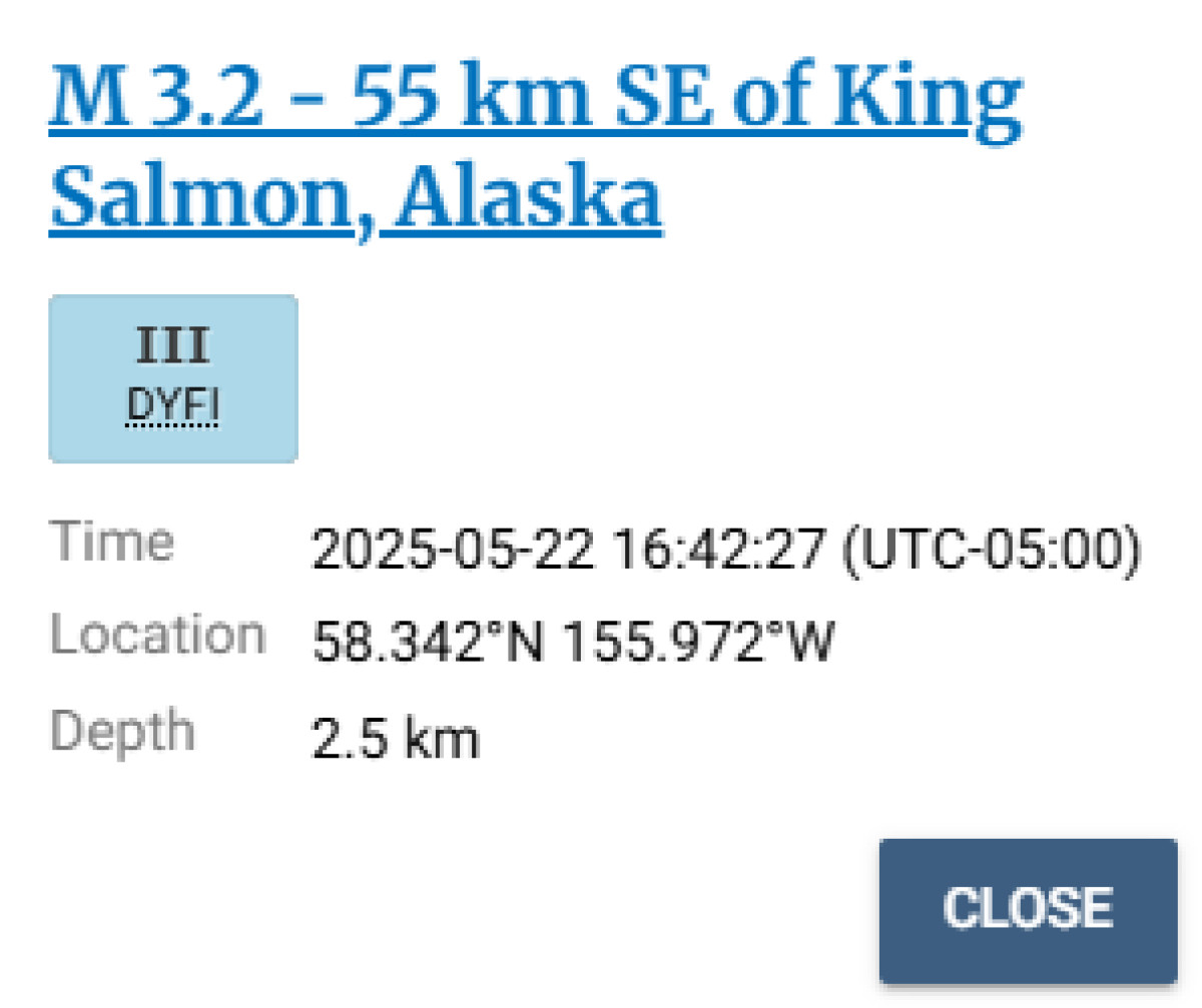 El último sismo registrado por USGS fue de 3.2 grados en Alaska.