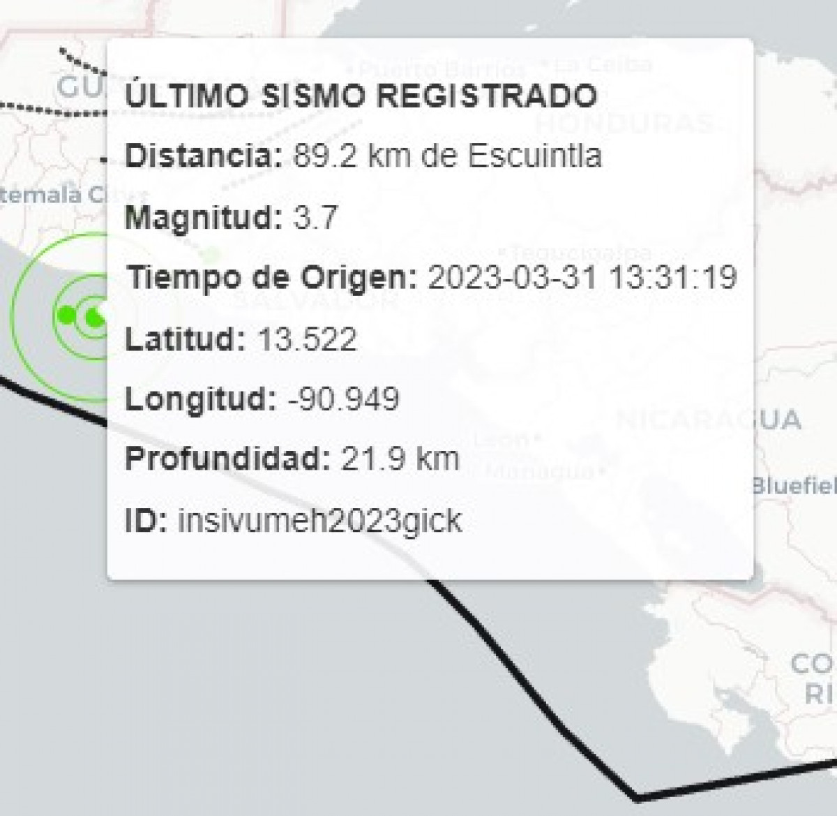 El último sismo registrado en Guatemala sucedió el viernes 31 de marzo, a las 13.31 horas a 89.2 km de Escuintla. El movimiento telúrico tuvo una magnitud de 3.7 y una profundidad de 21.9 km.