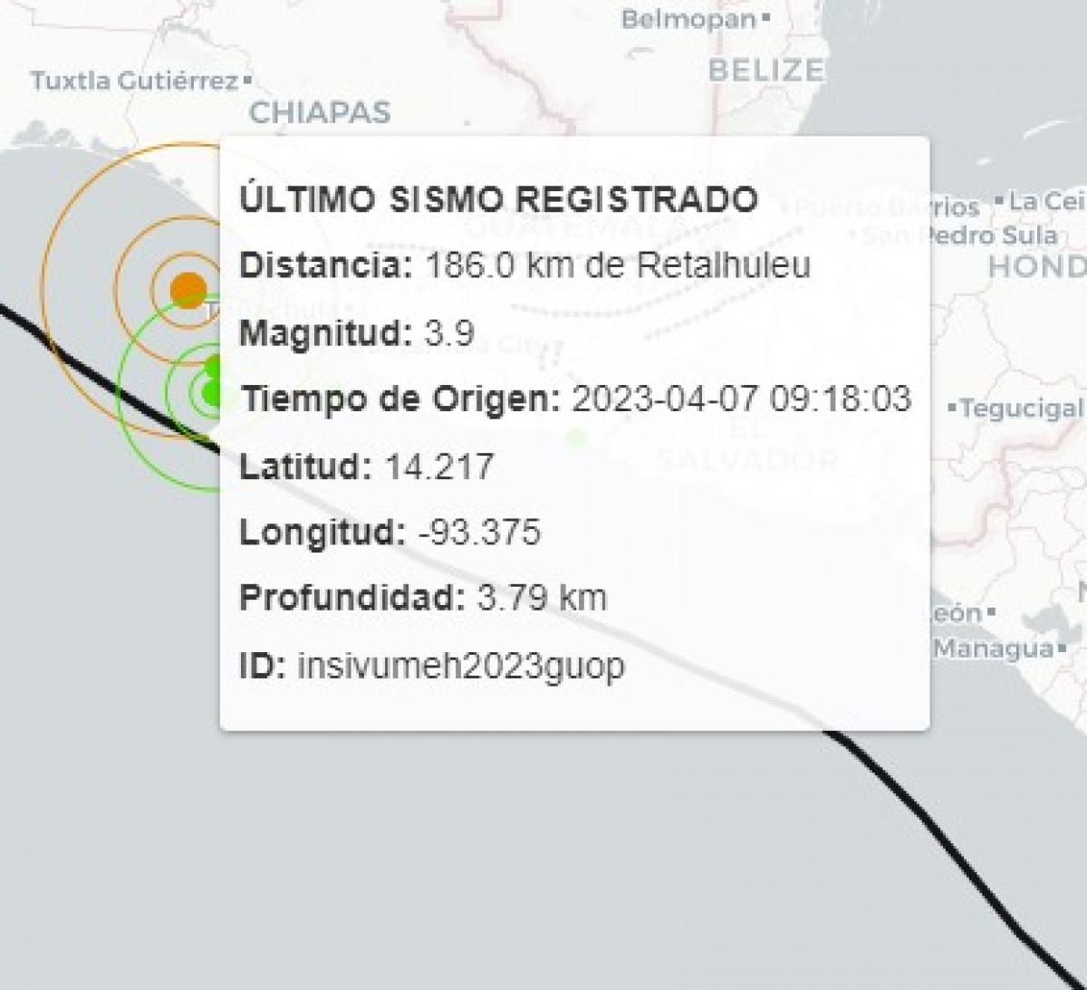 El último temblor registrado en Guatemala sucedió este 7 de abril, a las 9.18 horas a 186 km de Retalhuleu. El movimiento sísmico tuvo una magnitud de 3.9 y una profundidad de 3.79 km.