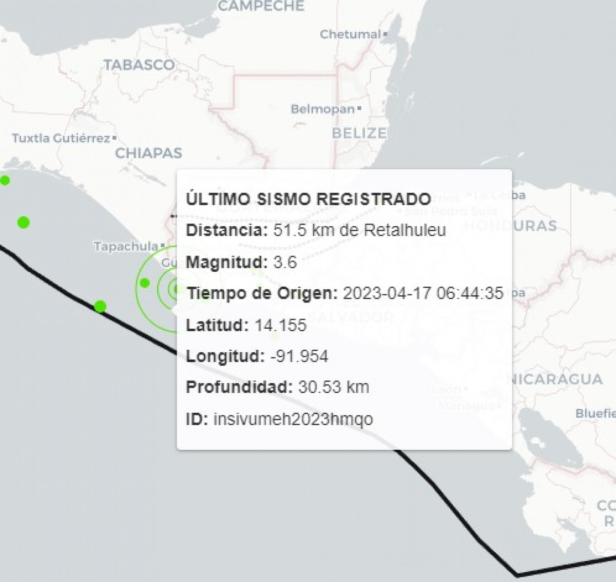 El último sismo sensible registrado en Guatemala sucedió este 17 de abril, a las 06.44 horas a 51.5 km de Retalhuleu. El movimiento sísmico tuvo una magnitud de 3.6 y una profundidad de 30.53 km.