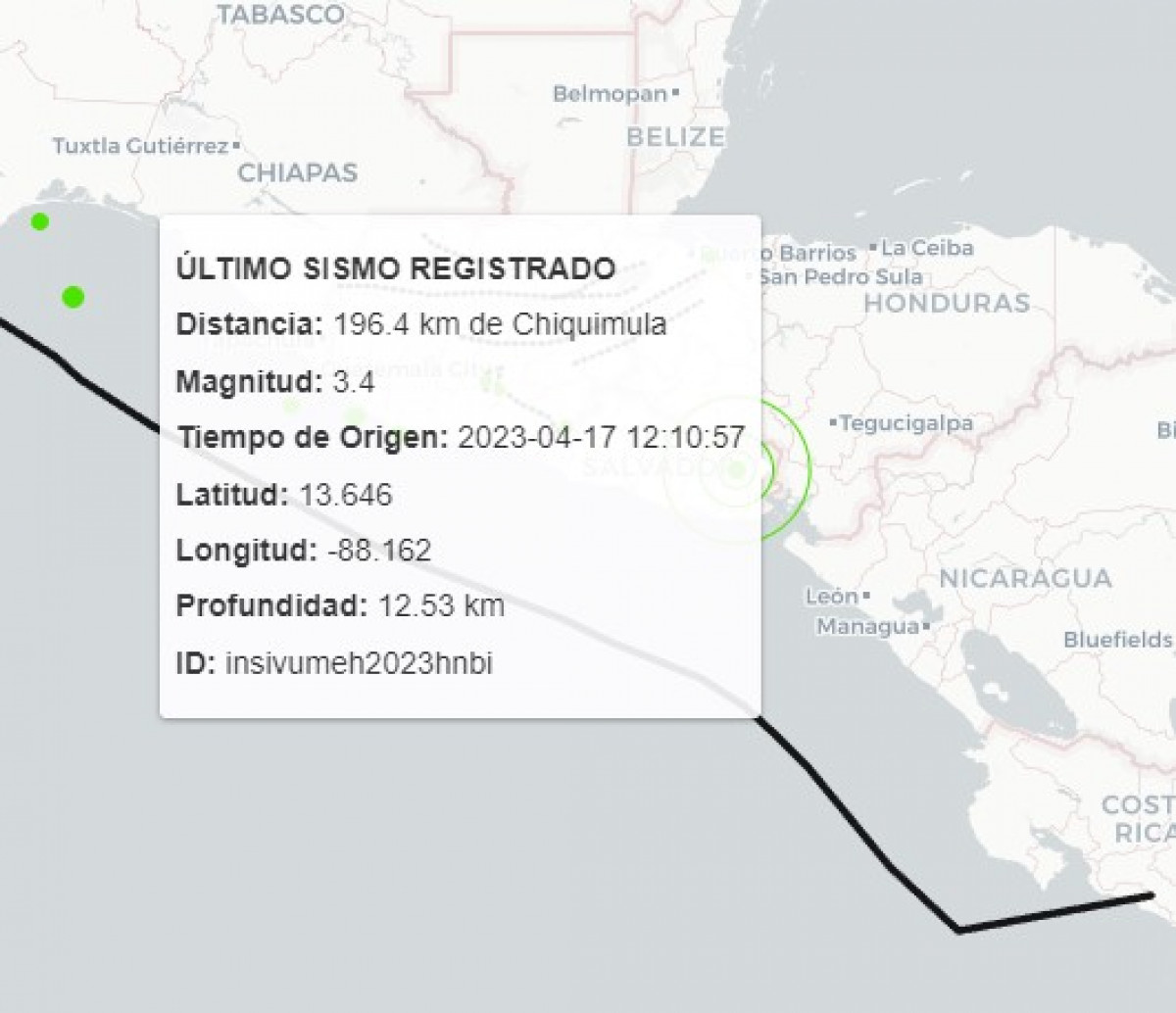 El último sismo sensible registrado en Guatemala sucedió este 17 de abril, a las 12.10 horas a 196.4 km de Chiquimula. El movimiento sísmico tuvo una magnitud de 3.4 y una profundidad de 12.53 km.