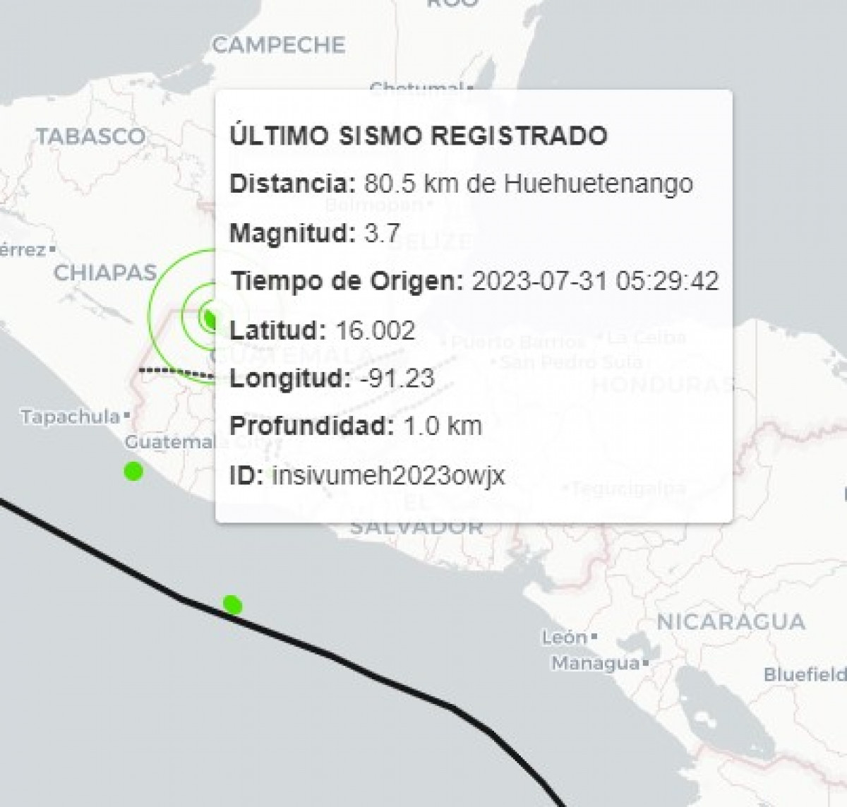 El último temblor en Guatemala se ha registrado este 31 de julio a las 5.29 a. m. a 80.5 km de Huehuetenango. El movimiento sísmico tuvo una magnitud de 3.7 y una profundidad de 1 km.