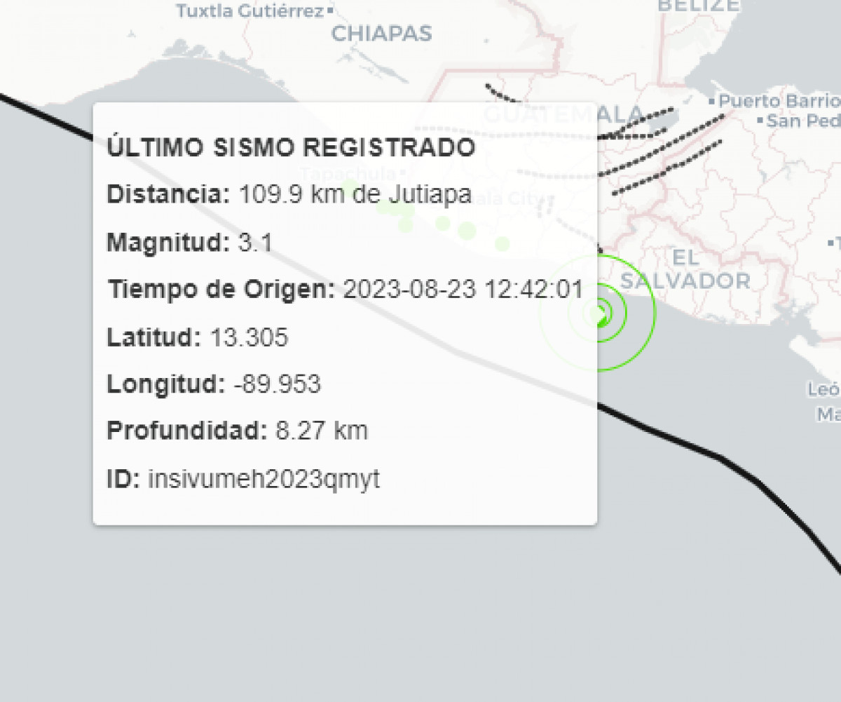 El último temblor registrado en Guatemala fue el 23 de agosto, a las 06:12.42 p. m., a 09.9 km de Jutiapa. El movimiento sísmico tuvo una magnitud de 3.1 y tuvo una profundidad de 8.27 km.
