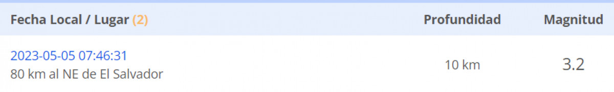 El último temblor registrado en Chile sucedió hoy 5 de mayo, a las 07.46 a. m. al noreste de El Salvador. El movimiento sísmico tuvo una magnitud de 3.2 y fue a una profundidad de 10 km.