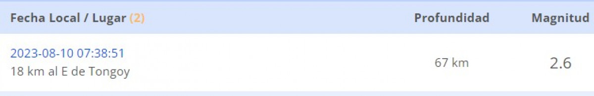 El último temblor registrado en Chile este 10 de agosto, fue a las 7.38 horas al este de Tongoy. El movimiento sísmico tuvo una magnitud de 2.6 y fue de una profundidad de 67 km.