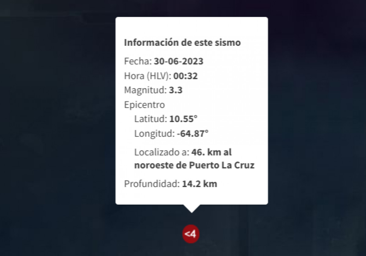 El último temblor registrado en Venezuela sucedió el 30 de junio, a las 00.32 horas, al noroeste de Puerto La Cruz. El movimiento sísmico tuvo una magnitud de 3.3 y fue a una profundidad de 14.2 km.