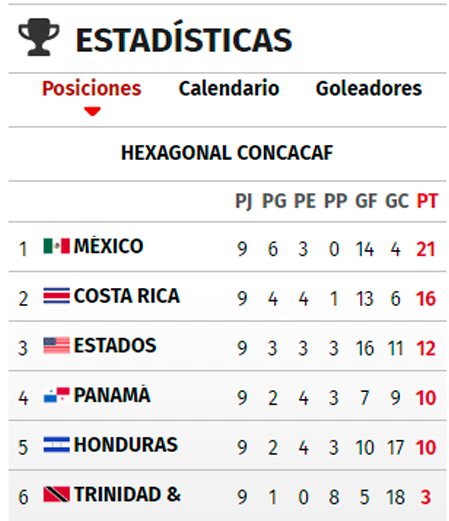 Eliminatorias Concacaf: así quedó la tabla de posiciones del Hexagonal Final tras fecha 9
